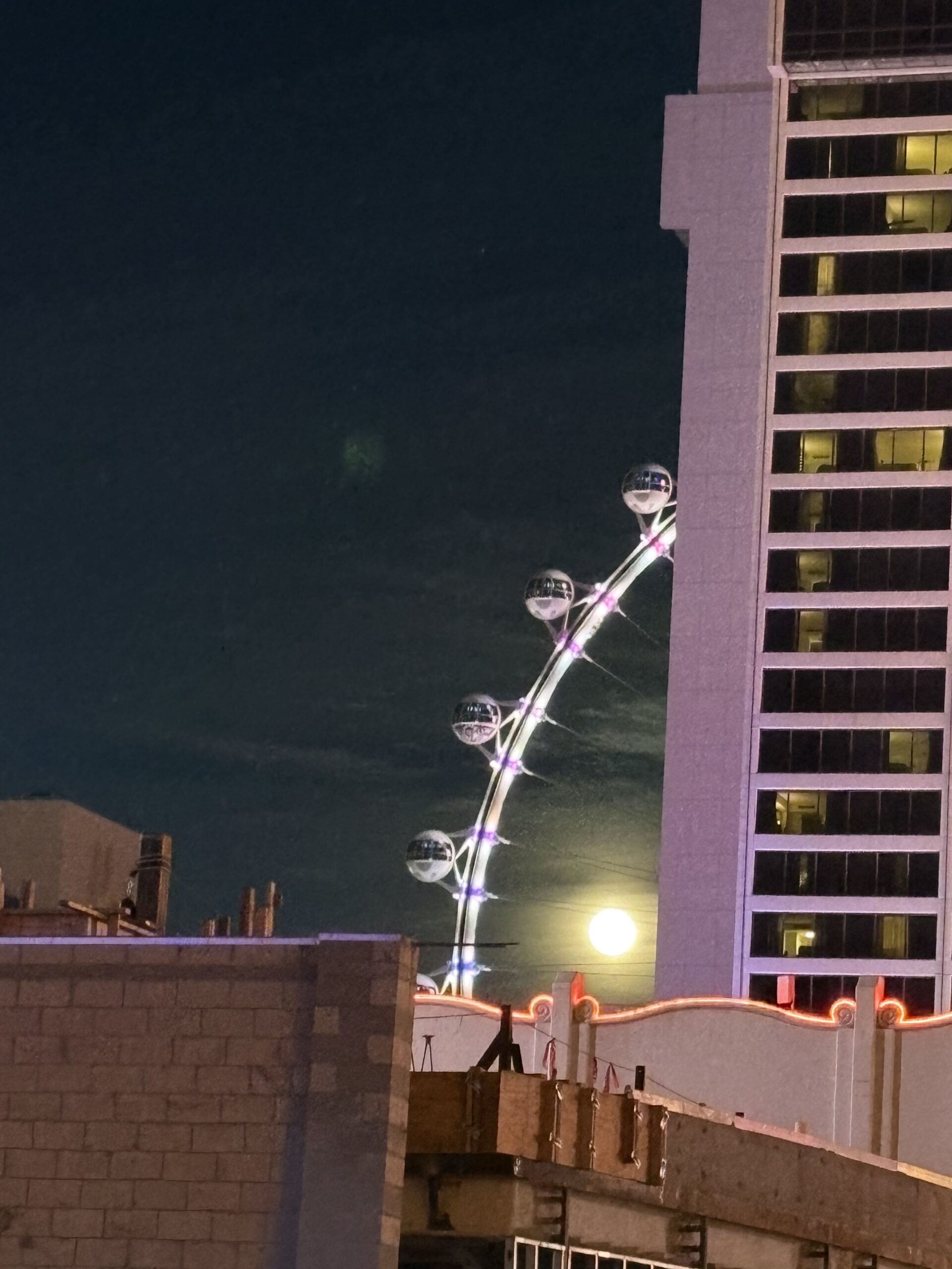 フラミンゴホテルの近くには観覧車があり月がきれいであった。砂漠の中にフラミンゴホテルをつくりラスベガスの礎をつくったとされるバグジーに少し思いをはせてフラミンゴホテルを後にした。それにしてもバグジーについて描いた映画を見たことがあるが、あまり感情移入することや共感することは難しい人物であった。