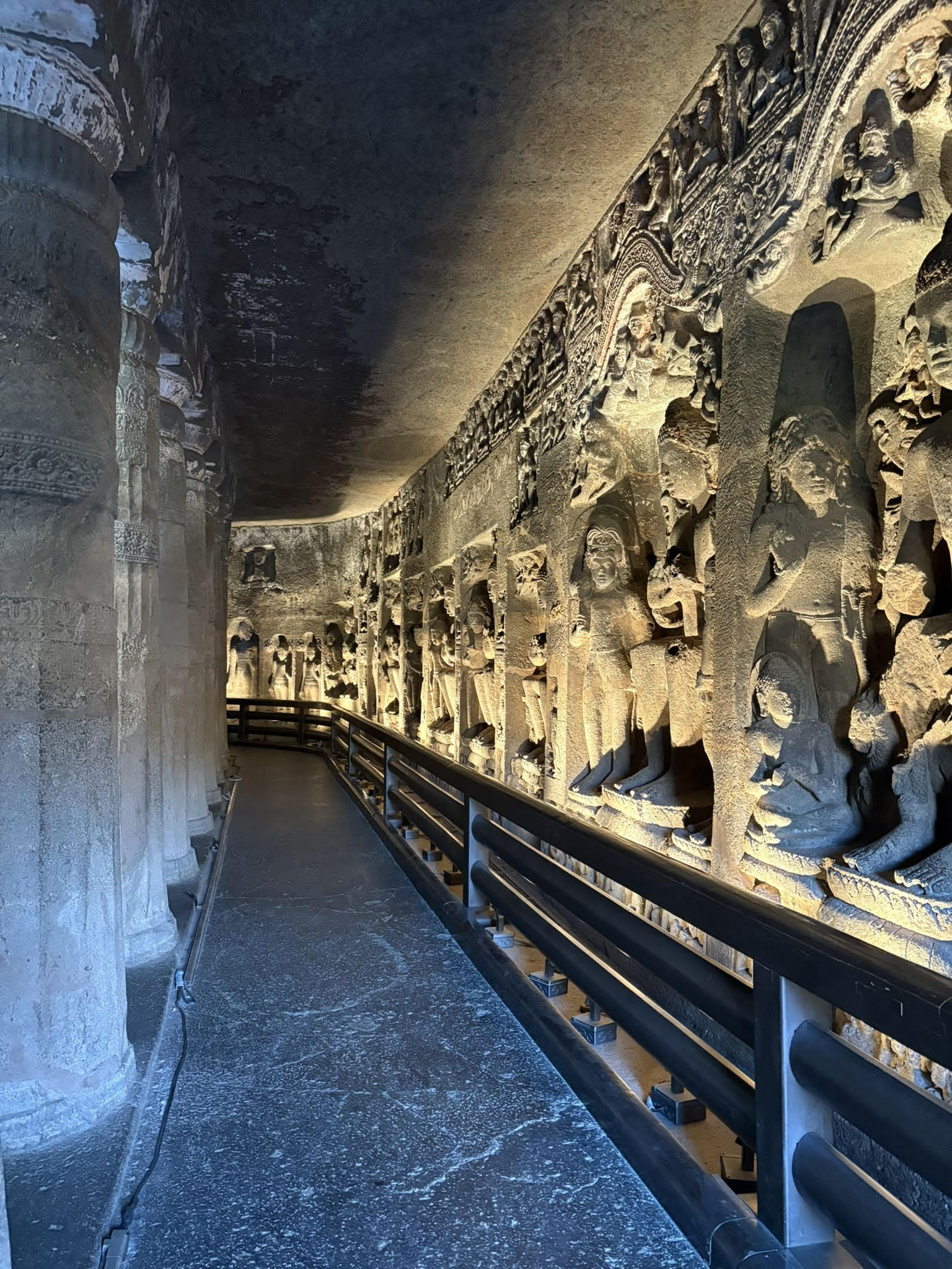 一日でエローラとアジャンタの主要寺院を見学することは可能である。ムンバイ発のツアーだと移動も含めて4・5日かけて回るツアーもあるようだ。今回駆け足で見て回ったが、世界遺産の名にふさわしい遺跡群であった。19世紀の初頭、虎狩りの最中にジャングルの中でアジャンタの遺跡を偶然見つけたイギリス人はどんな気持であったであろう。ともかく見つけてくれてありがとうかな、、