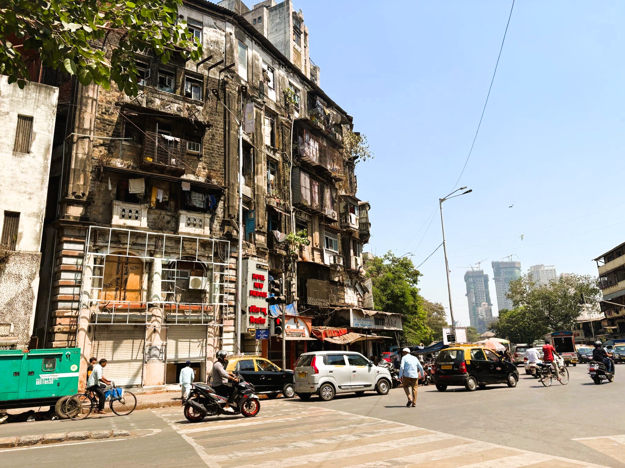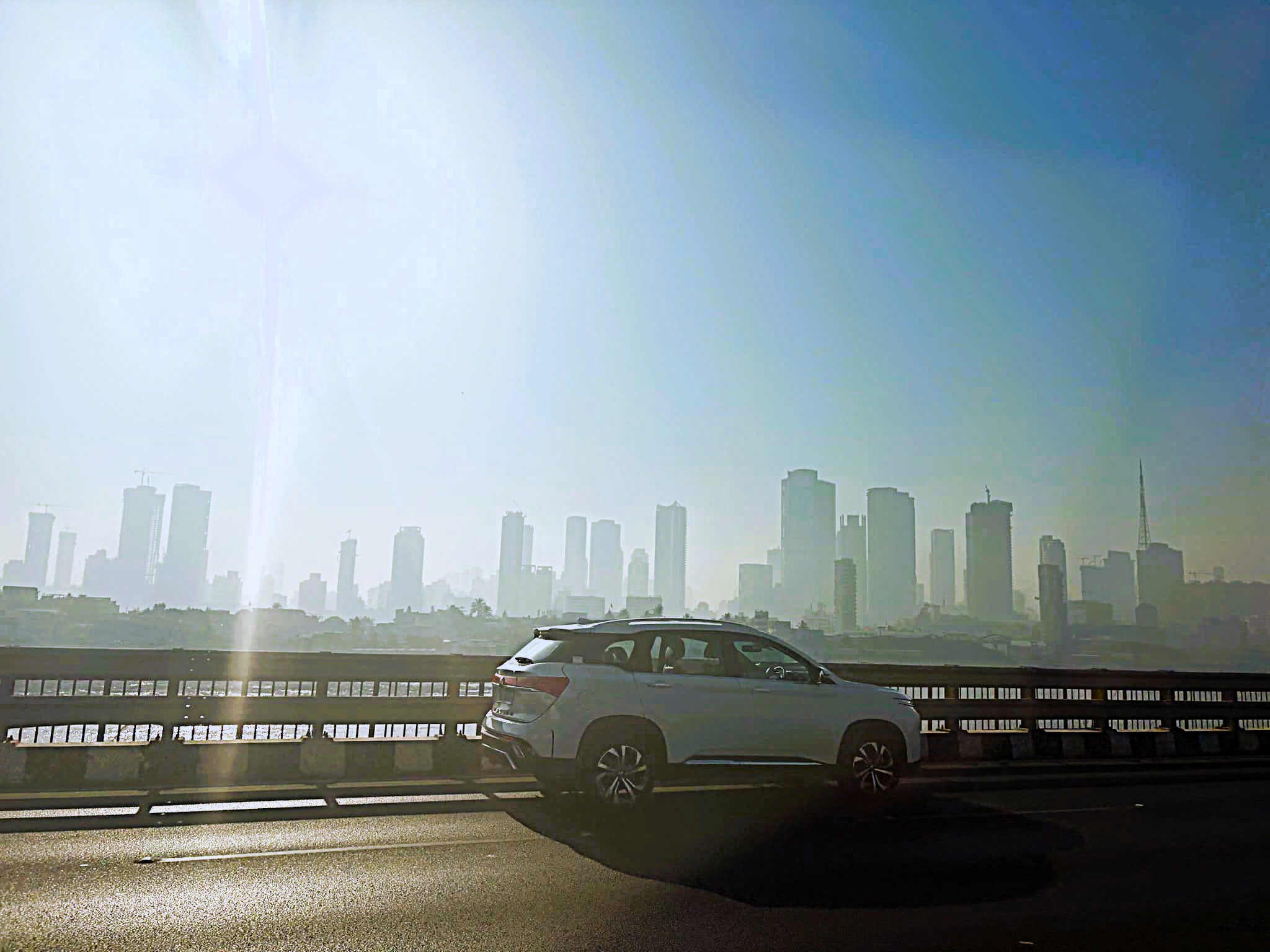 ムンバイ空港からホテルまで車で移動した。海沿いの高速を走っていると市街地の高層ビル群が見えてきた。
