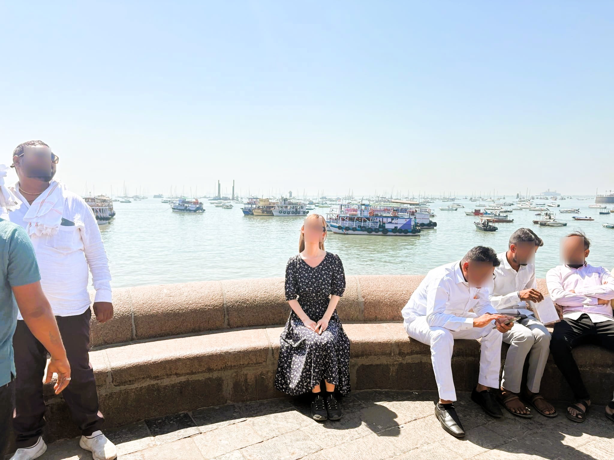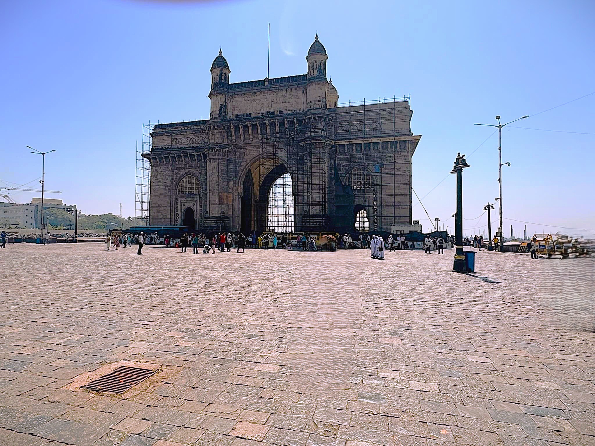 インド門の前の広場に着いた。港に面してインド門が建っている。インド門自体は修理中であろうか骨組みが覆っていた。広場には観光客が多くいた。観光客の写真を撮って売りつけてくるカメラマンたちは、写真を売りつけるための獲物をちらちらと探しながらカメラを向けてくる。カメラマンたちがどの獲物に狙いを定めようかと打ち合わせをしていた。カメラマンたちは写真を撮ることには慣れていても取られることにはあまり慣れていないようだ、なかなか目を合わせてくれない、、