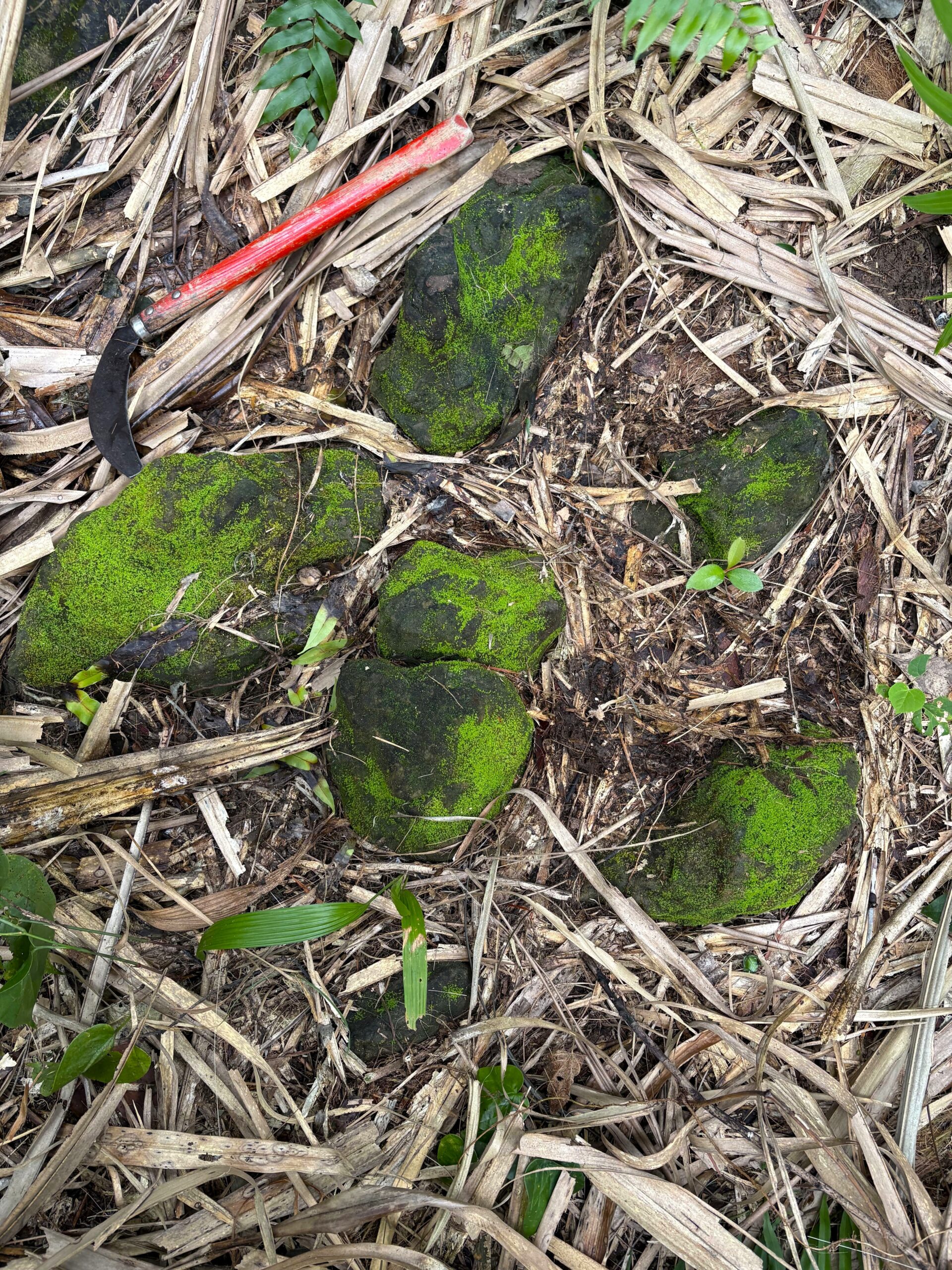草木に覆われた岩があった。祈りはこの岩の前でささげられるという、、
