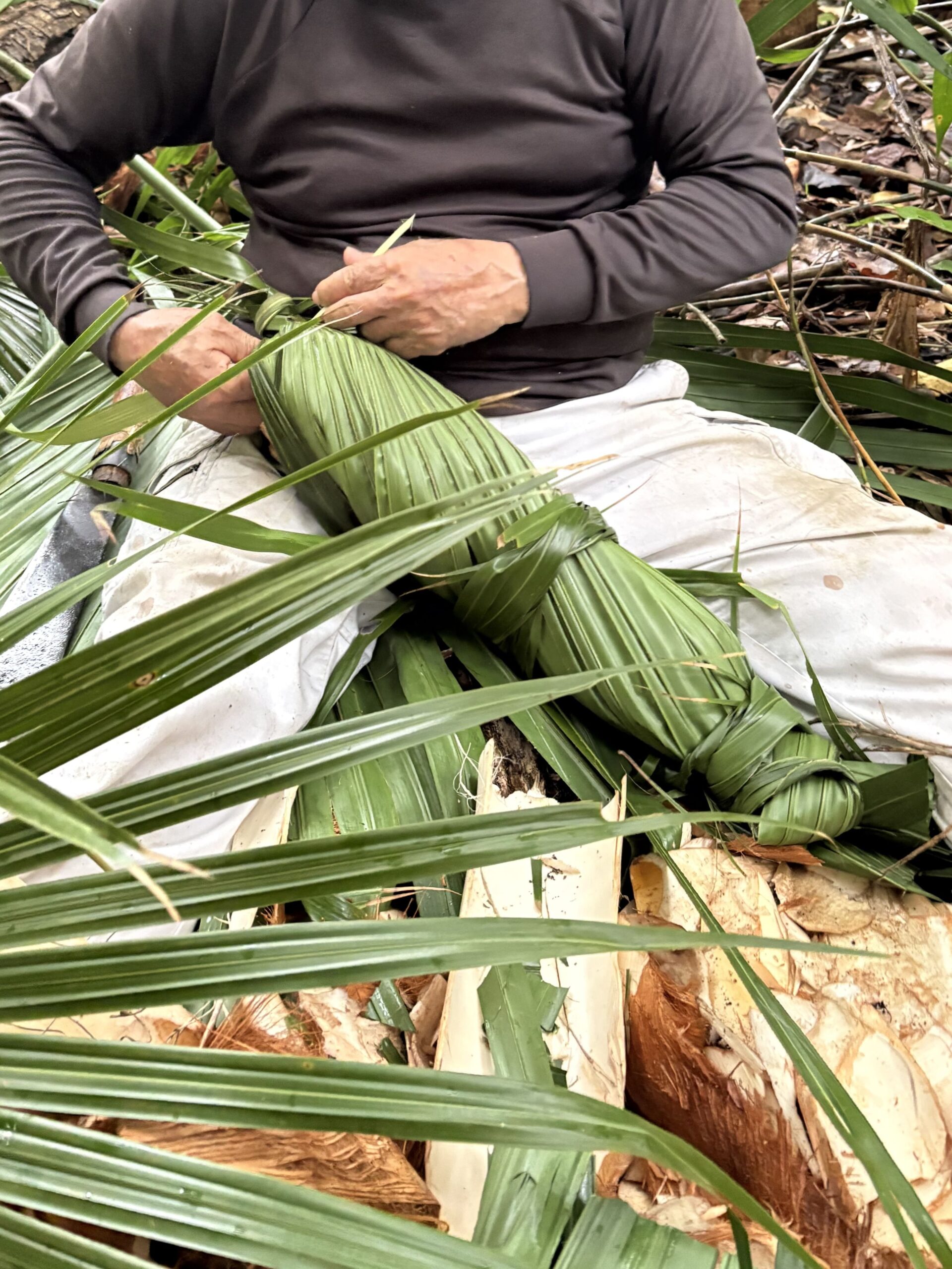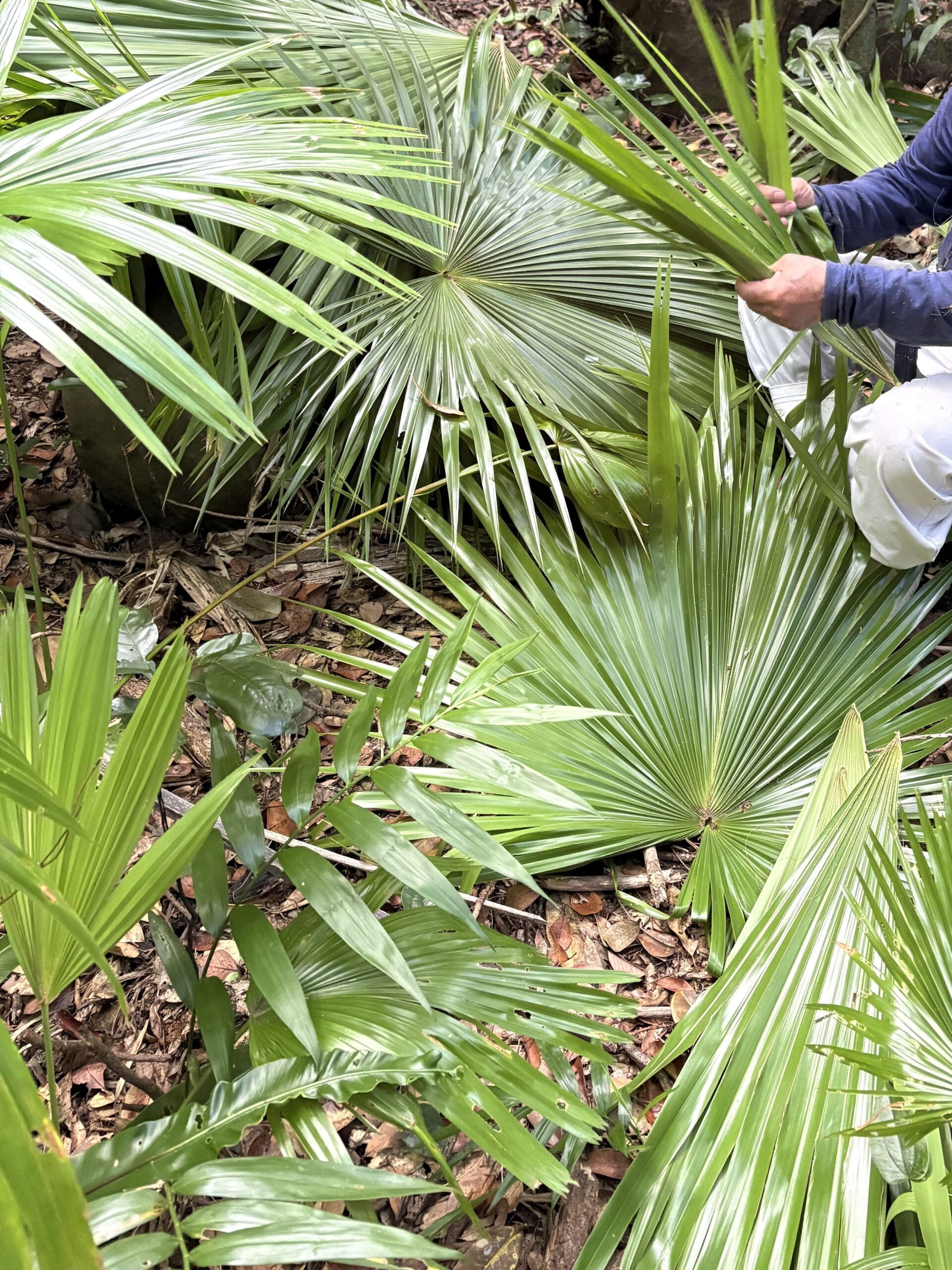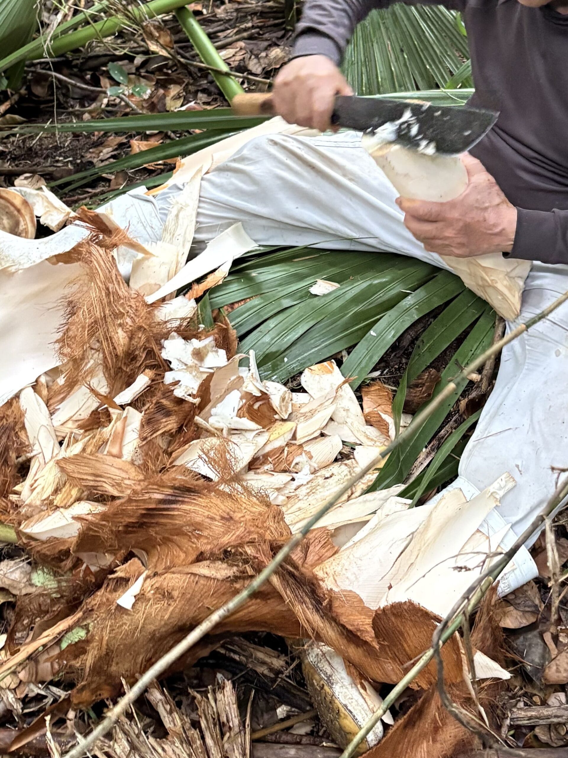 鍋に入れる食材としてクバの幹を獲りに行く人を山の中へ運んだ。