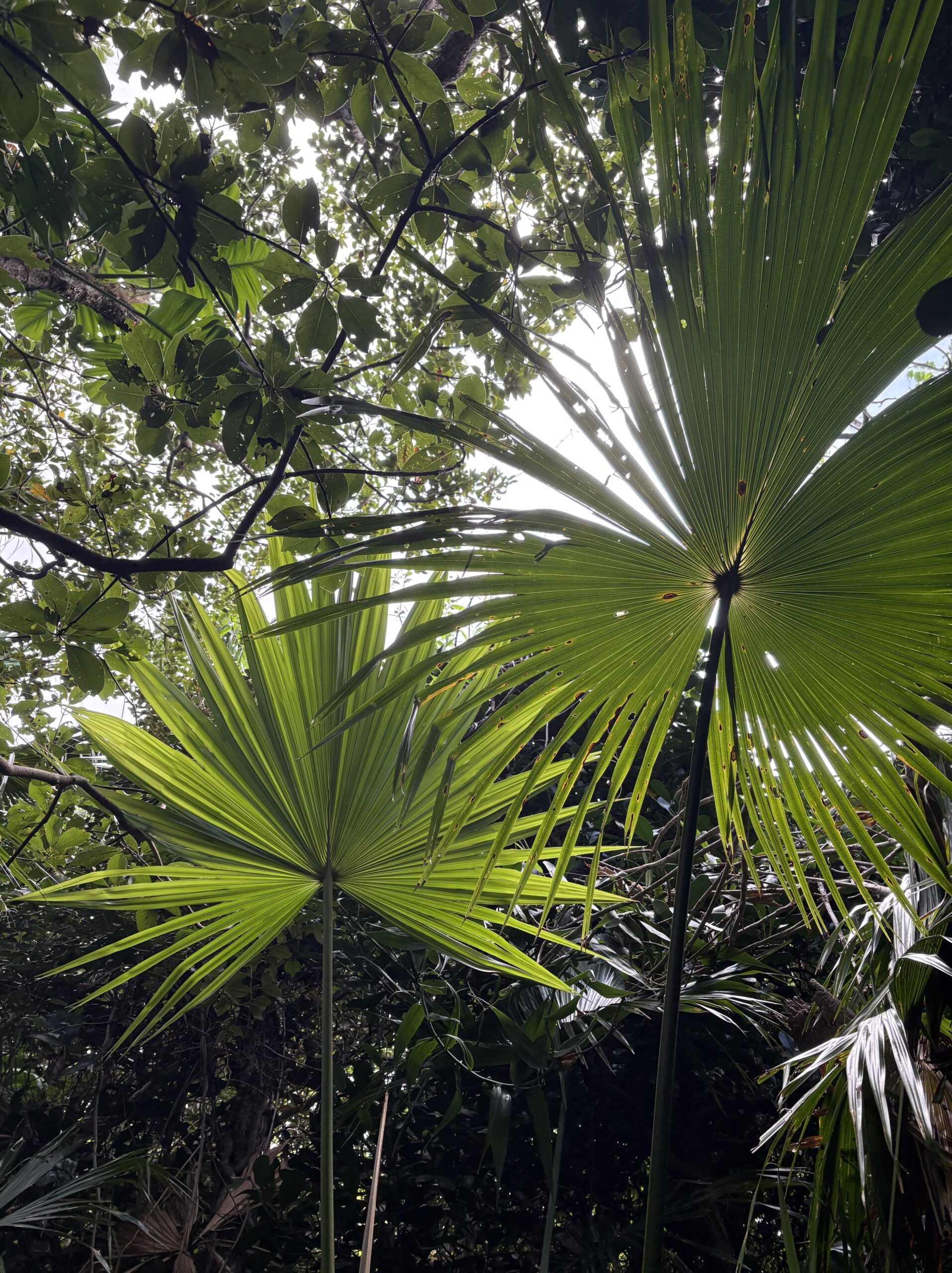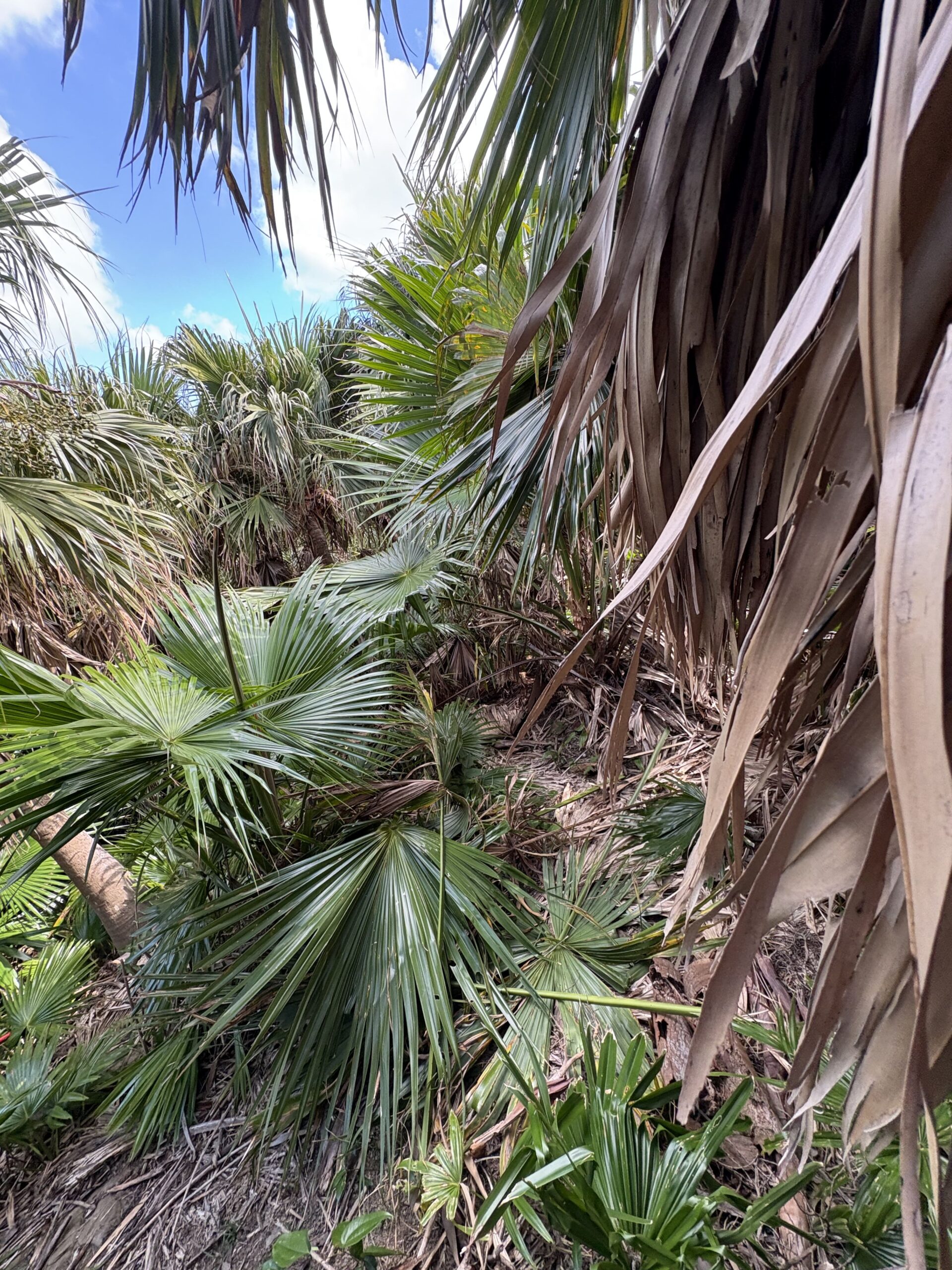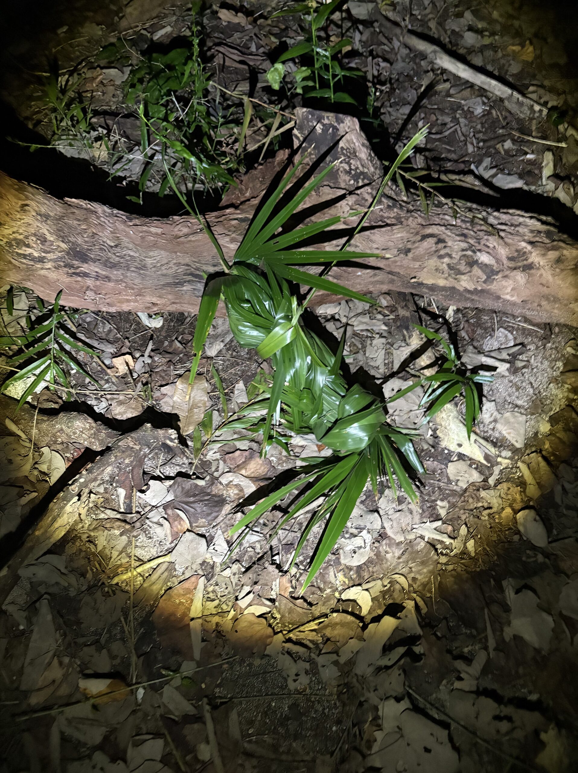 鍋に入れる食材としてクバの幹を獲りに行く人を山の中へ運んだ。