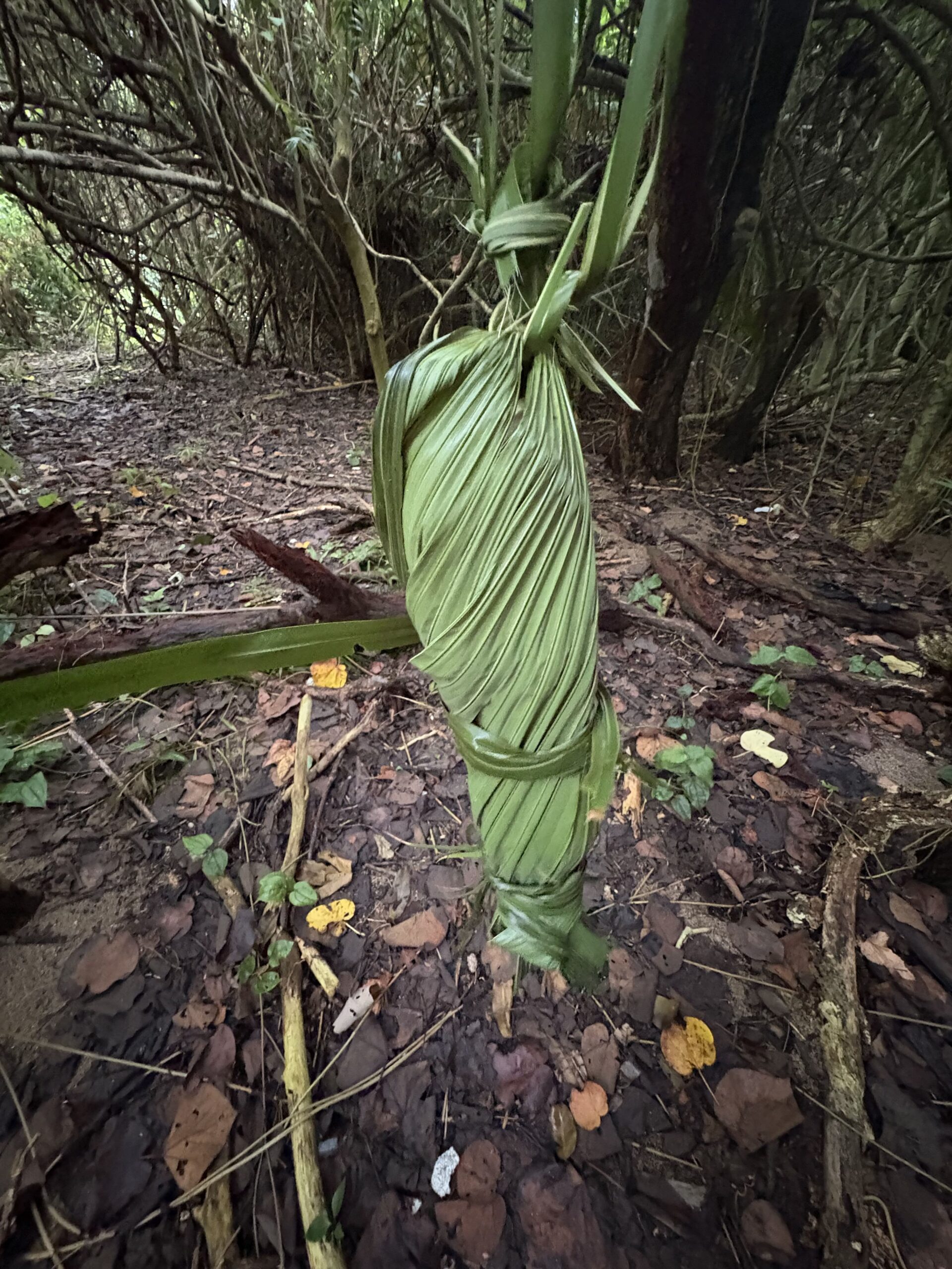 扇、傘、モノを包みぶら下げるためにも使う。観光客にもなじみが深いのはクバ巻きの花酒のビンではないであろうか、、